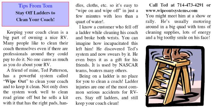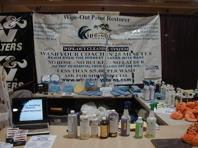 | Since then Ted Patterson has been on an intense and non stop cross country tour in his coach doing product demonstrations and spreading the word about Wipe Out Systems detailing products. |